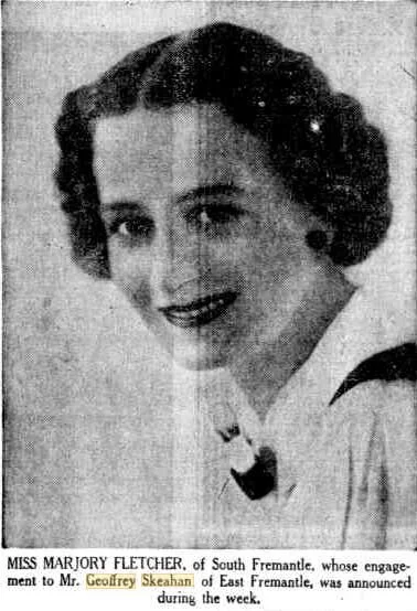 1939 Miss Marjory Fletcher, of South Fremantle, whose engagement to Mr. Geoffrey Skeahan, of East Fremantle, was announced during the week. (reference)