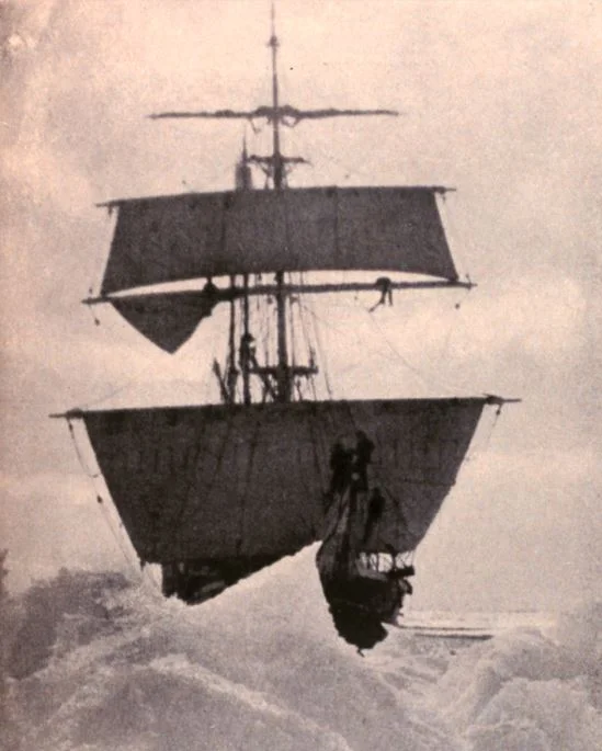 See photo of the Nimrod held up in the ice (reference) and departing NZ for the South Pole. (reference)