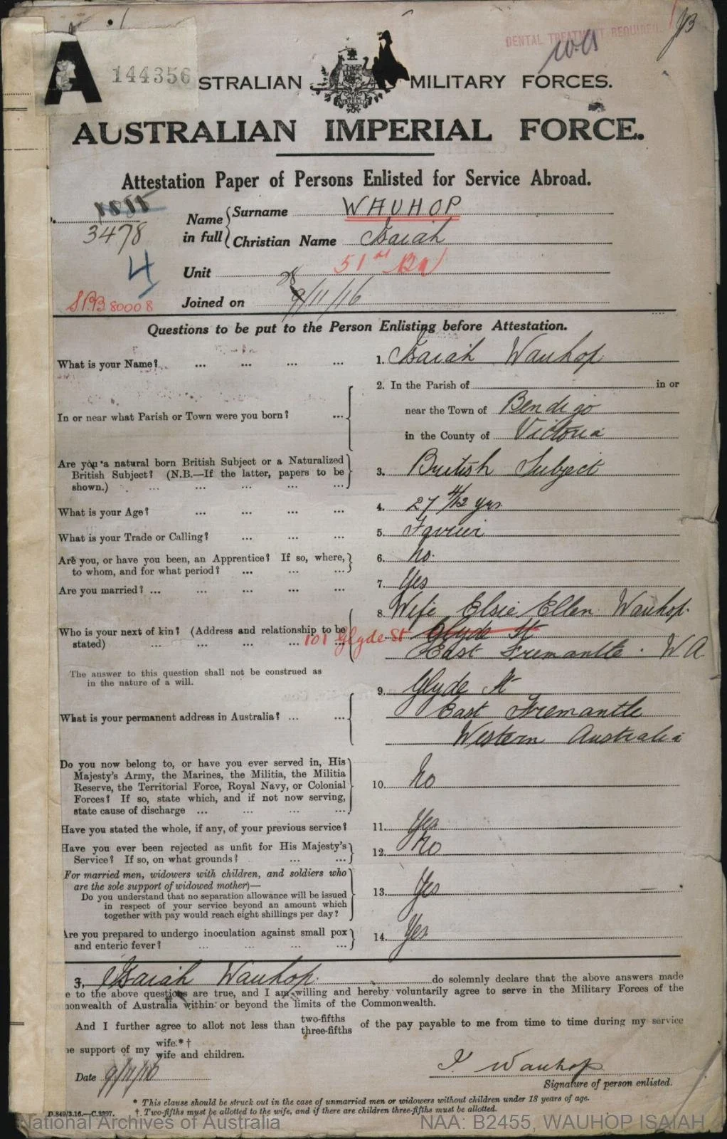 After the withdrawal from Gallipoli, the 11th Battalion returned to Egypt. It was split to help form the 51st Battalion...(Reference) In March 1916, this battalion sailed for France and the Western Front. From then until 1918, the battalion took part in bloody trench warfare. Its first major action in France was at Pozieres in the Somme valley in July. (Reference)