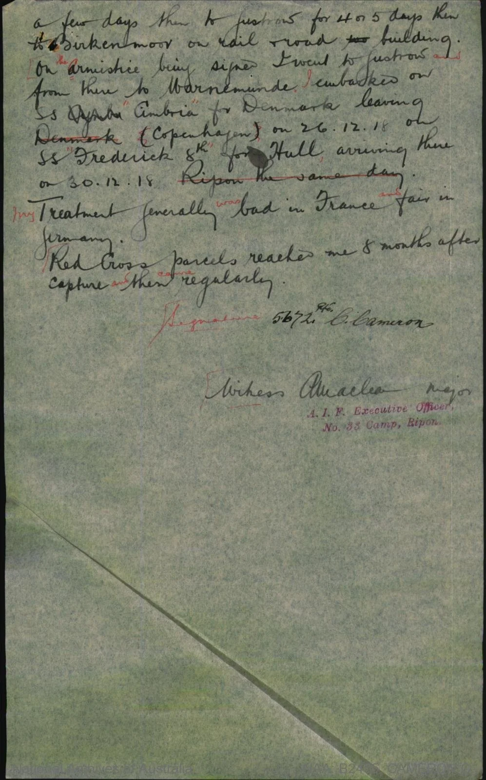 Signature 5672. Pte. C. Cameron
