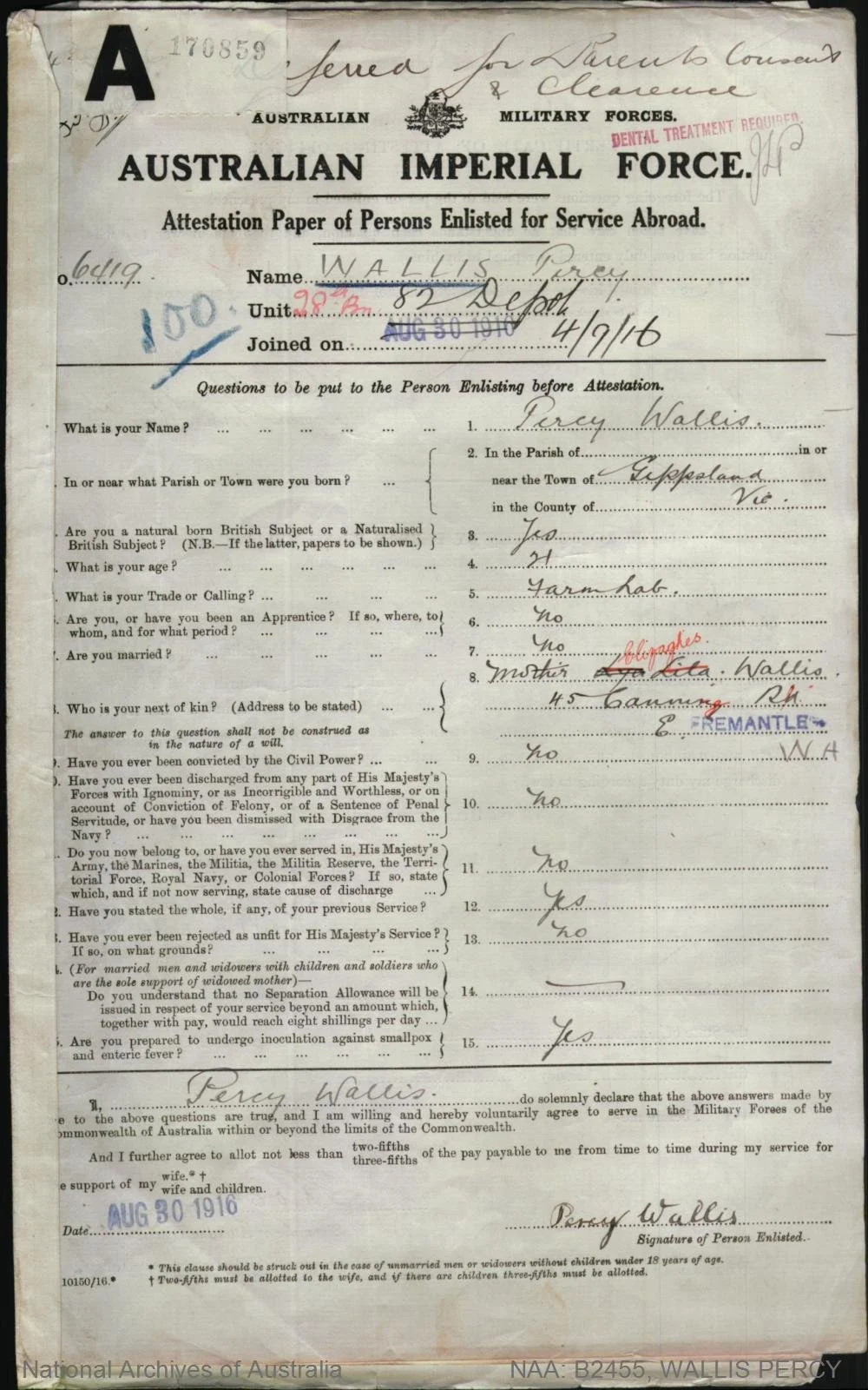 Enlistment Date: 4 September 1916