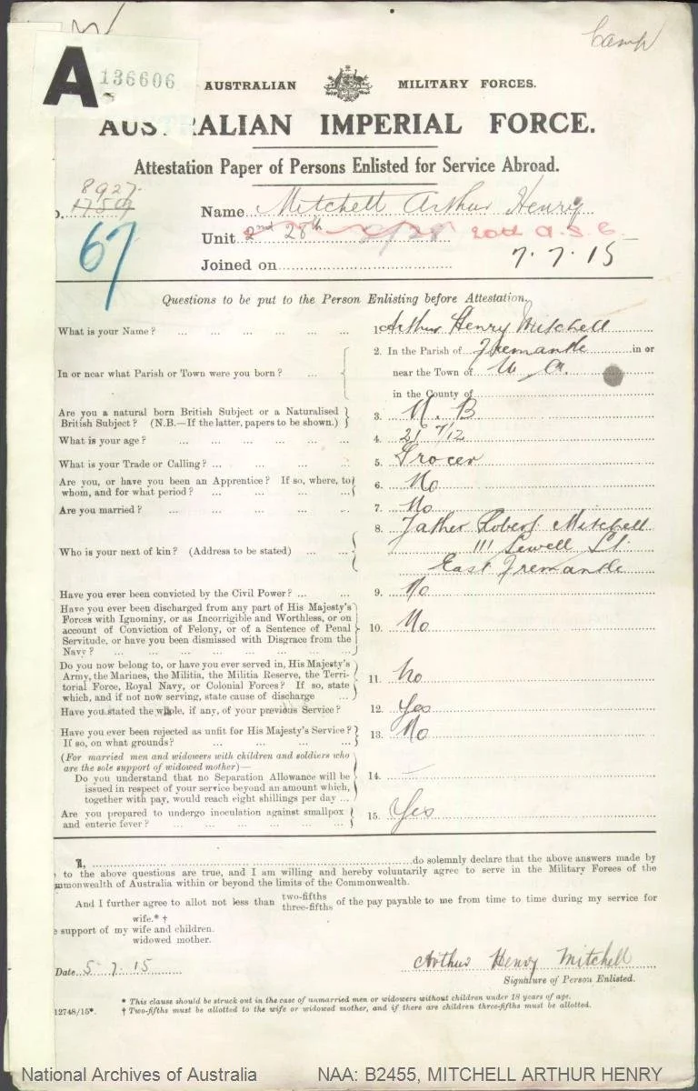 Samuel and Mary Morris and their 8 children were a well-known working class family that lived on the corner of George and Silas Streets, East Fremantle from 1914 until 1925. Three of their sons and one son-in-law served with the AIF during WWl and all returned.