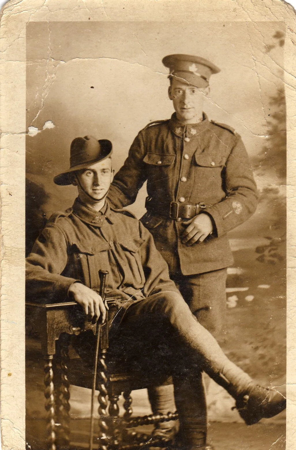 Thomas Adolphus Morris (b.1892-1956) nicknamed ‘Skin’, originally joined up to the 11th Battalion on 14 September 1914 but was discharged a fortnight later, the reason being he was ‘Not likely to become an efficient soldier’ (the usual reason given to men who could not be inducted into the Light Horsemen). He joined up again 8 March 1915 and subsequently went to Gallipoli with the 16th Battalion and was wounded twice (13 July & 8 August 1915) and discharged back in Australia on 16 June 1916. Tom enrolled again on 19 February 1917 and when the ship was in Durban (South Africa) on 23 July 1917 he was noted ‘Absent Without Leave’. Later it was found he had joined the Native Transport Corps of the African Expeditionary Force and was fighting in German East Africa under his own name. Consequently, his record was notated ‘Not Eligible for War Medals’ but on 10 August 1922 he did receive the 1914/1915 Star. Tom married Violet Gwendoline Burton in 1926, and had one daughter Pamela.